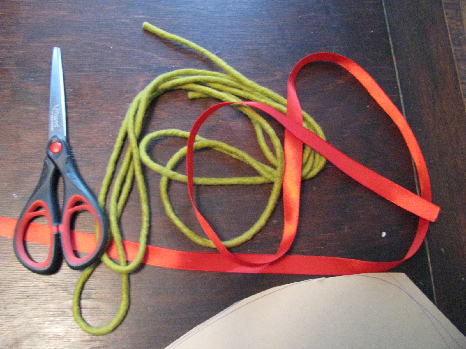 6. Thread two longer pieces of ribbon or thick string through each of the hole, again knotting underneath. These pieces need to be long enough for your kids to hold the ends of while standing up